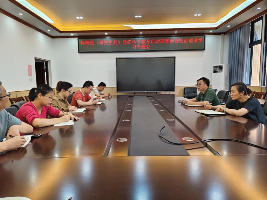4月22日下午,科研处(研究生处)在东校区新民楼C213会议室召开党纪学习教育启动部署会暨政治理论专题学习会,会议由罗志辉同志主持,全体教职工参加会议。