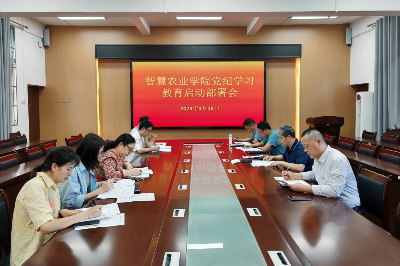 4月18日下午,智慧农业学院在我校东校区旧行政楼304会议室召开党纪学习教育启动部署会。党委书记梁修杰,副书记、纪委书记谭志坚,副院长刘召亮、专职组织员刘福海和各党支部书记、副书记,辅导员参加会议。