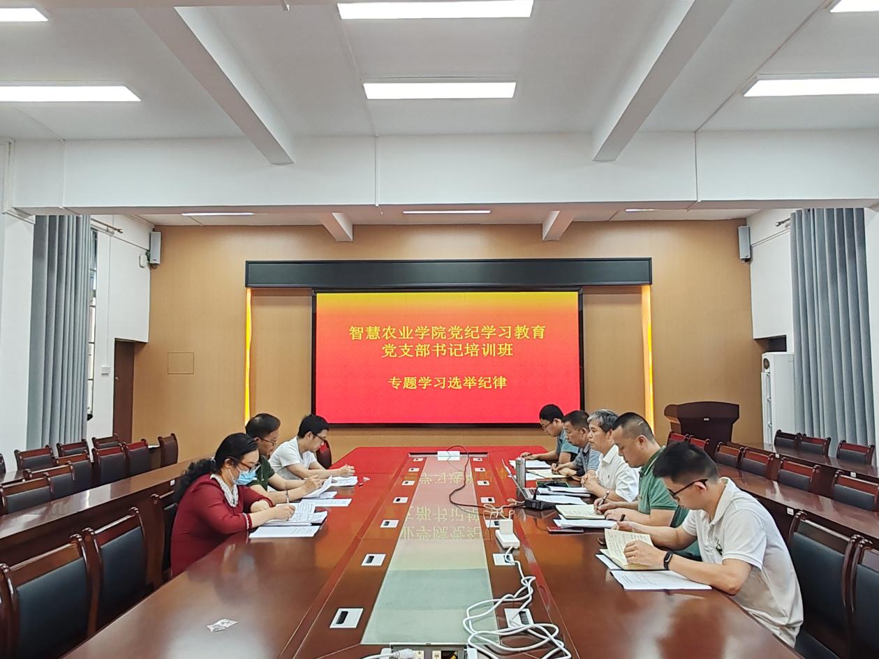 4月23日,智慧农业学院于该院304会议室举行党纪学习教育党支部书记培训班,结合选举工作深入学习《中国共产党纪律处分条例》(以下简称《条例》)。该院党委书记梁修杰、副书记兼副院长谭志坚、副院长刘召亮、专职组织员刘福海及各党支部书记参加学习培训。