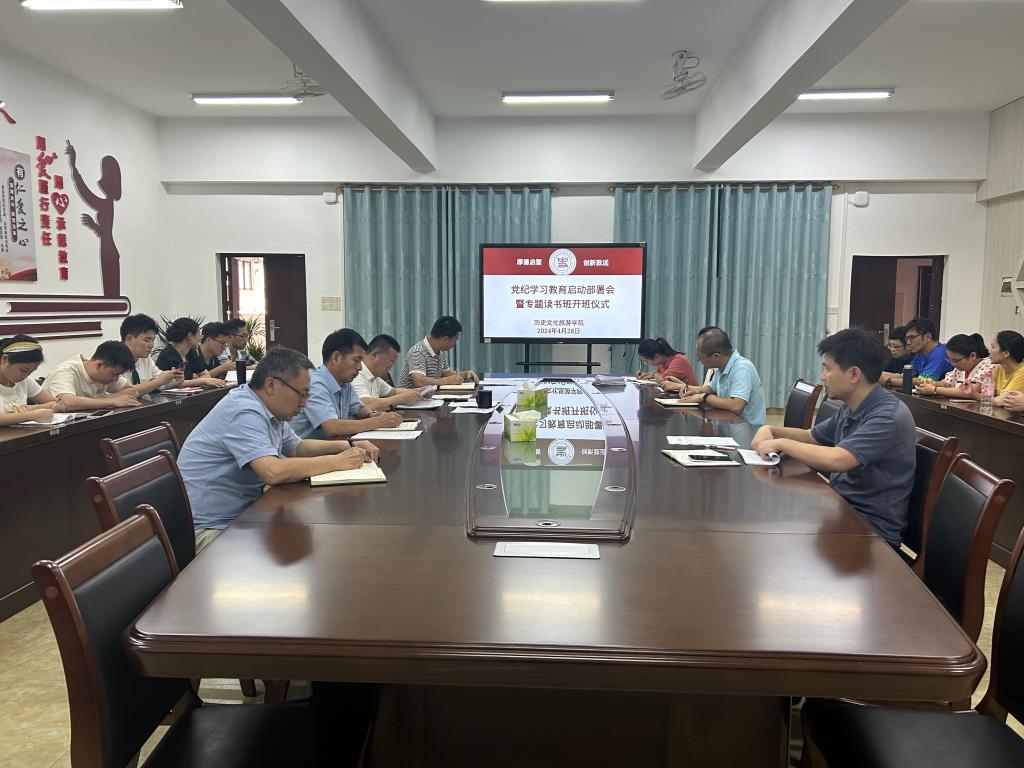 4月28日下午,历史文化旅游学院党委在我校东校区至善楼509会议室召开党纪学习教育启动部署会暨专题读书班开班仪式。该院党委书记徐小军等领导班子成员、党支部书记、全体党员教师参加会议。会议由该院党委书记徐小军主持。