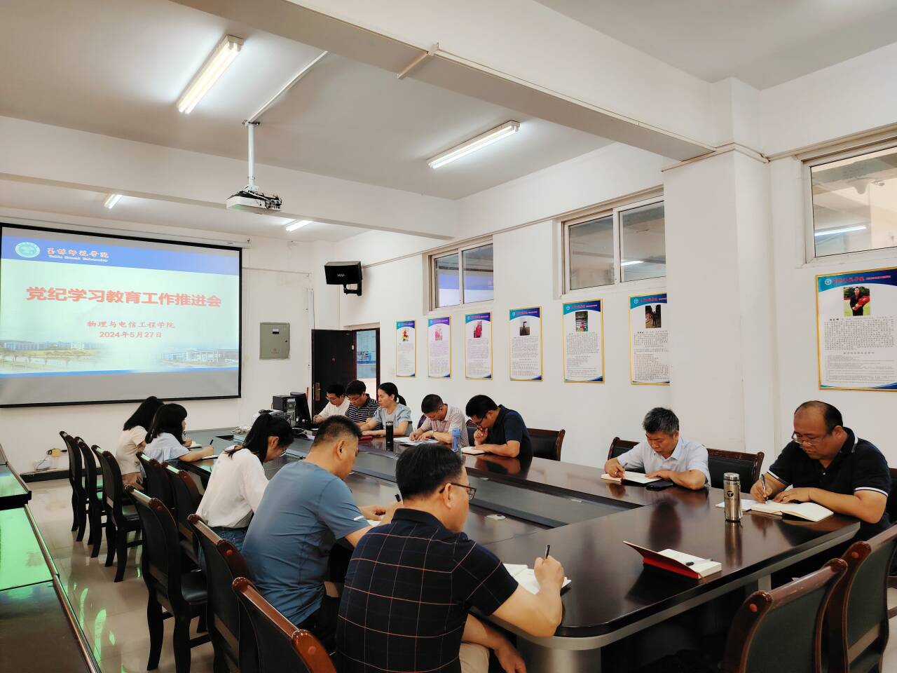 5月27日,物理与电信工程学院在我校东校区物电楼BG221会议室组织召开党纪学习教育工作推进会暨集中观看警示教育纪录片,该院党委书记陈铁军等领导班子成员、专职组织员、各党支部书记参加学习。