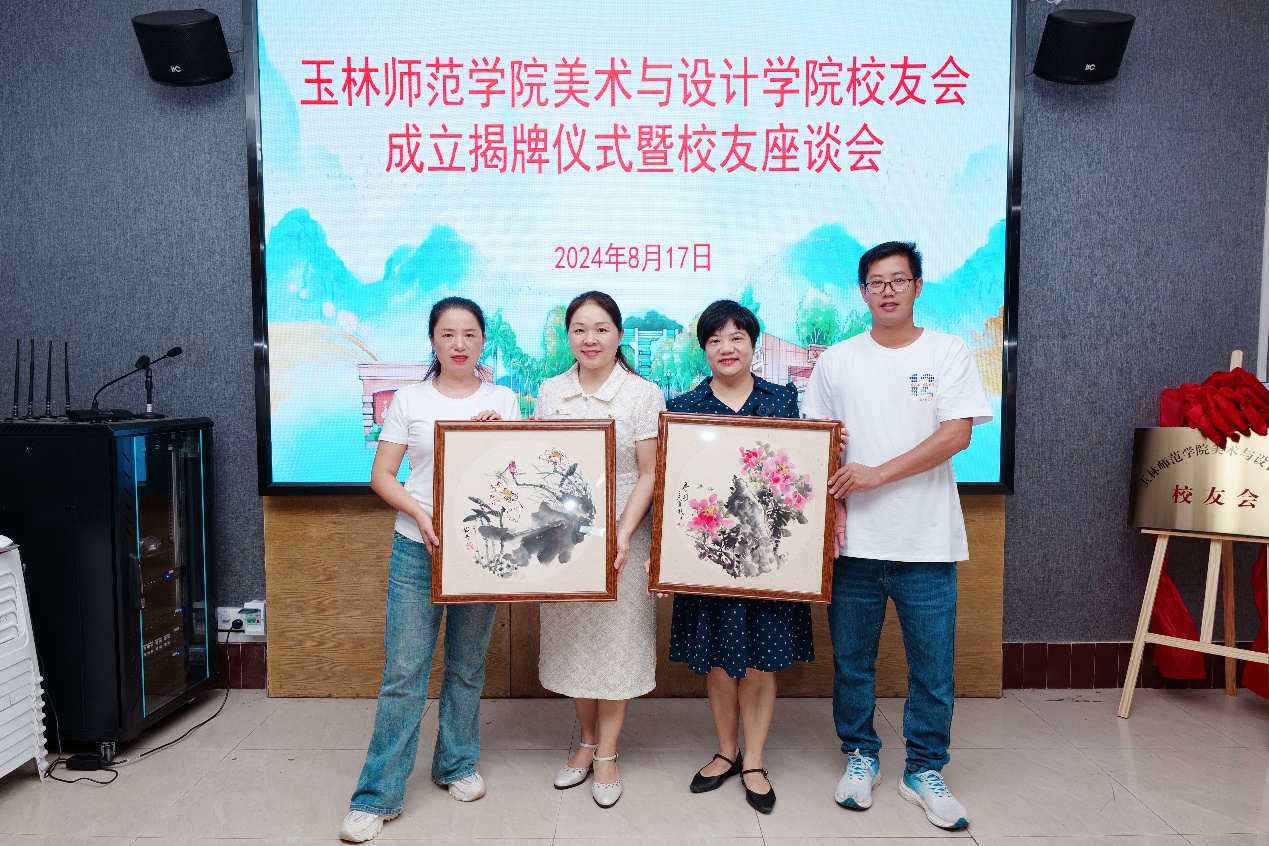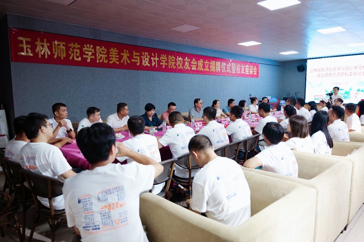 8月17日上午,美术与设计学院校友会成立揭牌仪式暨校友座谈会在东校区实训楼展厅会议室召开。广西玉林师范学院校友会秘书长、校友办主任、统战部副部长李家贵、学生工作处处长杨潇、后勤基建处处长欧斌、历史文化旅游学院党委副书记严耀燕等出席成立仪式。美术与设计学院领导班子、校友代表等60余人参加仪式。